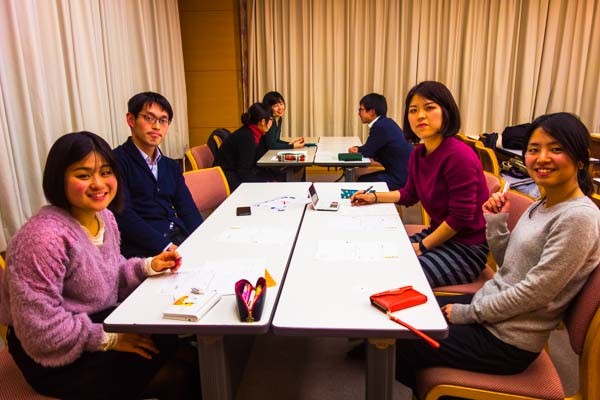 グループワークでは、4,5名のグループでお話しを進めていきます。